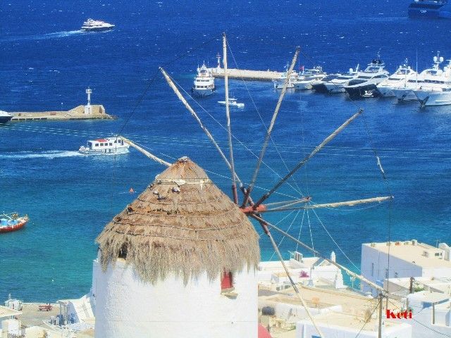 Mykonos es dominio del dios Eolo por lo que los molinos dominan el horizonte con sus aspas al viento. Y dicen que aquí las noches son una fiesta y que los gays son bien acogidos. De ninguna de las dos facetas puedo opinar porque no las he vivido. Pero...